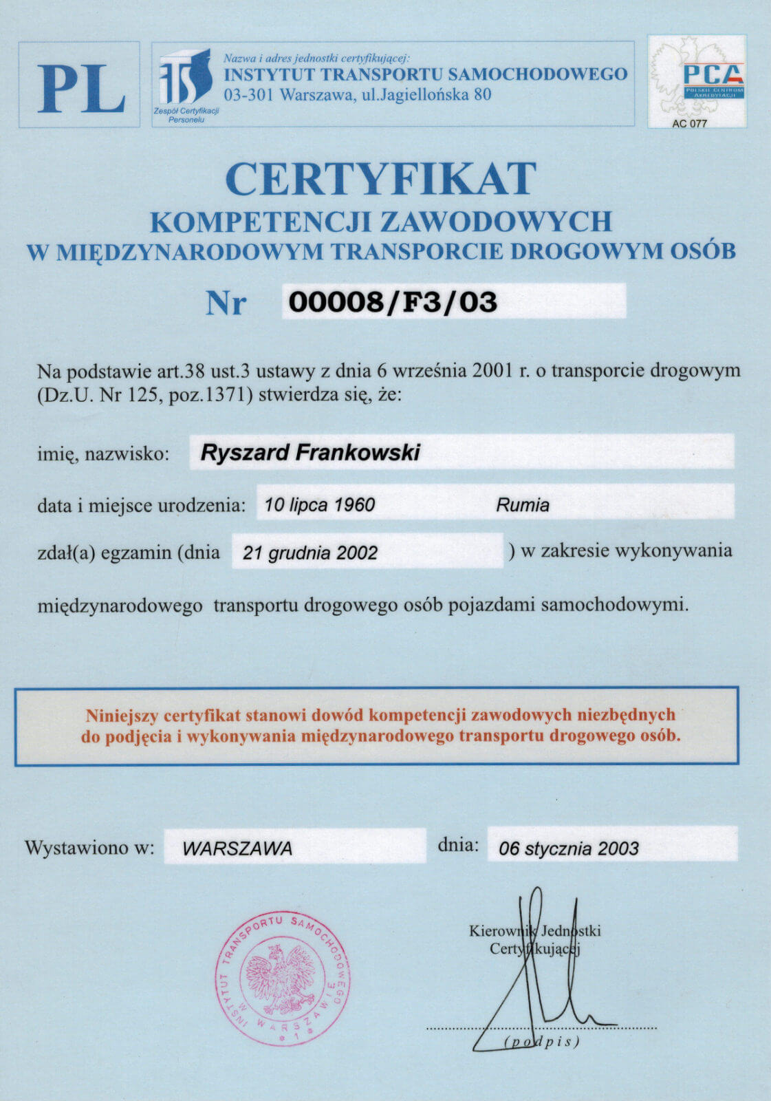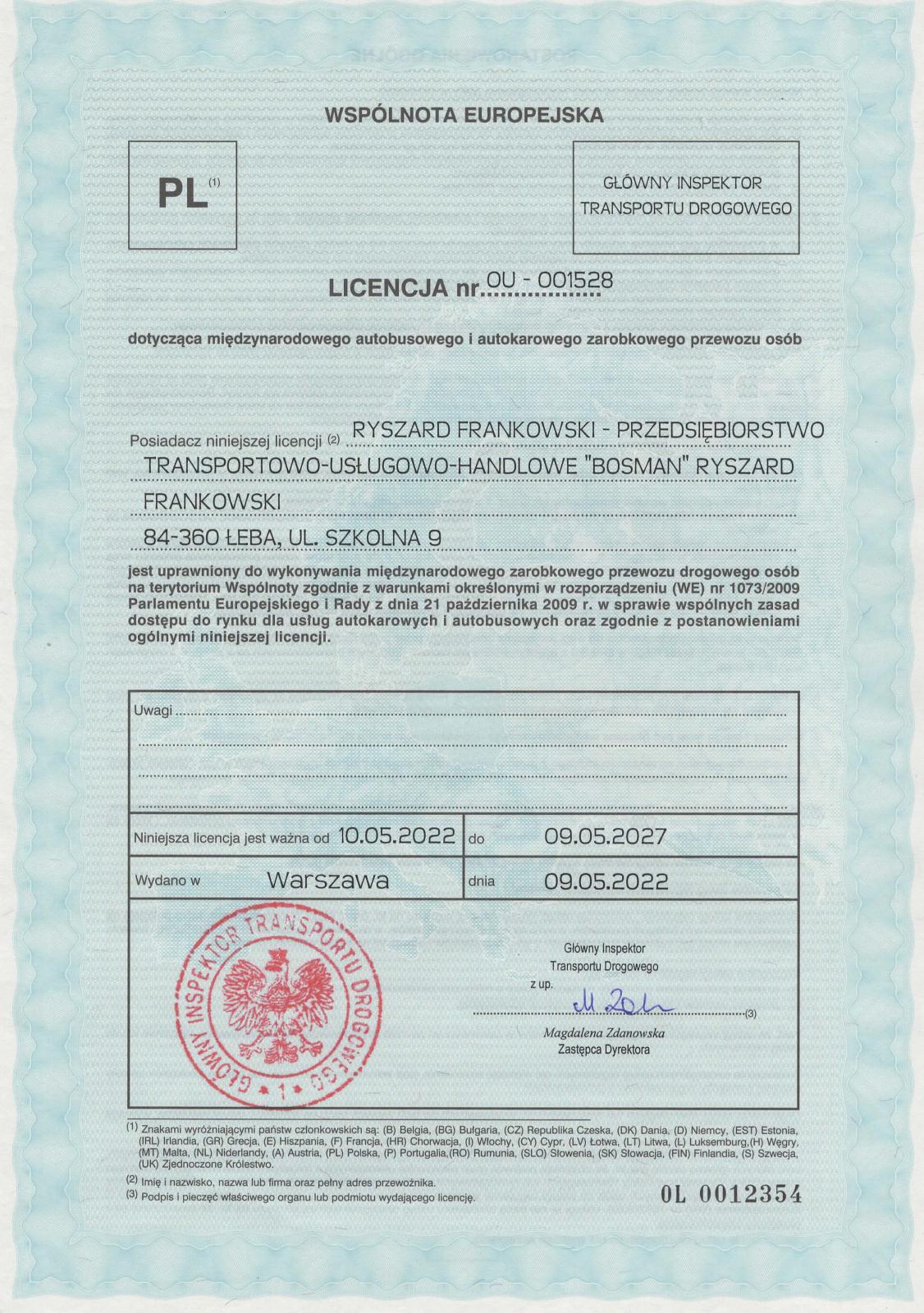 NASZE LICENCJE, CERTYFIKATY ...