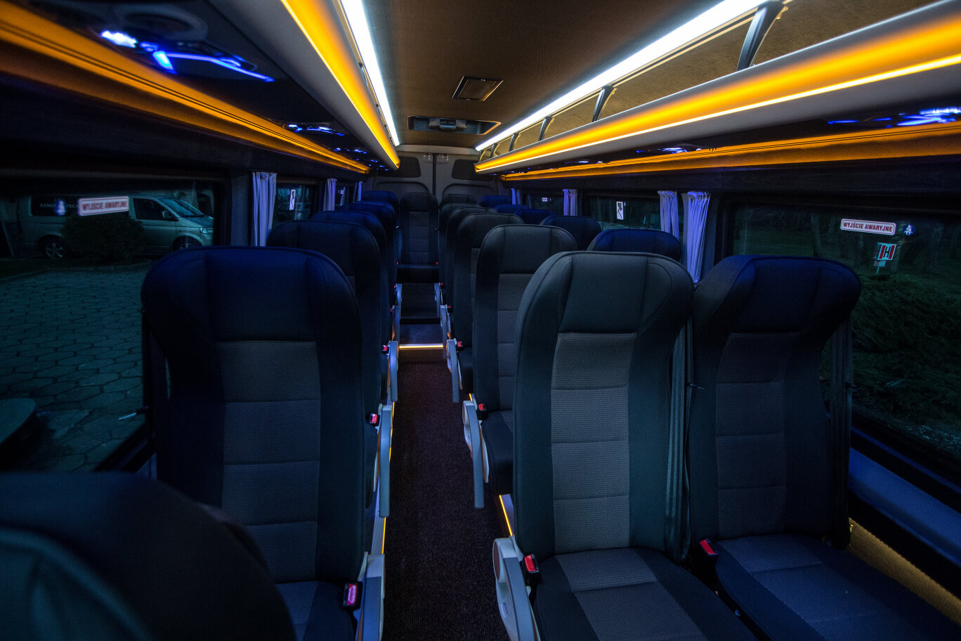 - Fotele z pełną regulacją i pasami bezpieczeństwa